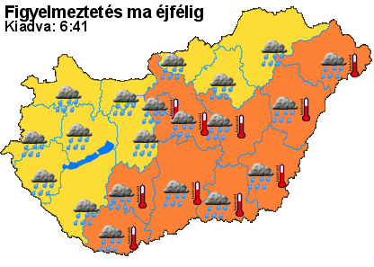 Emellett – mint írták - a napi középhőmérséklet a Dunától keletre több megyében, illetve délen elérheti a 25 Celsius-fokot. A tartós hőség miatt Budapestre és Pest megyére, továbbá Baranya, Bács-Kiskun, Békés, Csongrád, Hajdú-Bihar, Jász-Nagykun-Szolnok, Szabolcs-Szatmár-Bereg és Tolna megyére narancssárga, vagyis másodfokú figyelmeztetés van érvényben.