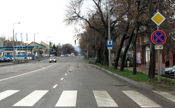 A gyalogos az úttesten lakott területen levő főútvonalon csak az útkereszteződésnél mehet át.