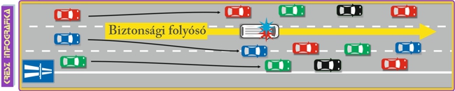 Autópályán és többsávos autóúton, ha forgalmi torlódás alakul ki, akkor biztonsági folyósót kell kialakítani úgy, hogy a legbelső sávban érkezőknek bal szélre, a többi sávban közlekedőknek lehetséges mértékben jobbra kell húzódni. A leállósávot ebben az esetben is üresen kell hagyni.