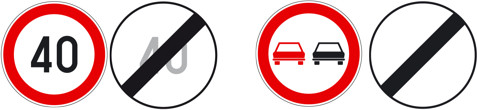 A mozgó járművekre vonatkozó tilalmi táblák, ahol a tilalom, a táblánál kezdődik, és a vége jelzésig vagy más néven feloldó tábláig tart.