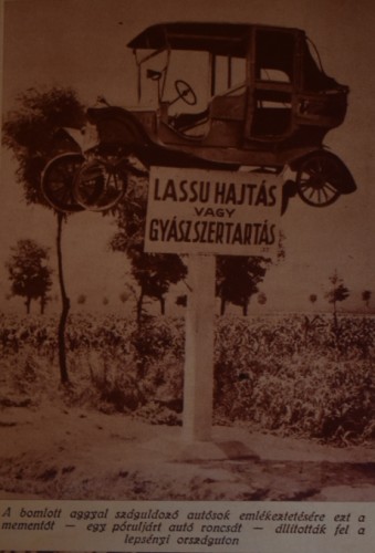 A 72. kilométerszelvényben kihelyezett installáció egy emelvényen lévő roncsautó. Célja, hogy felhívja a figyelmet a gyorshajtás, az ittas vagy figyelmetlen vezetés, valamint a felelőtlen közlekedési magatartás súlyos, akár visszafordíthatatlan következményeire. A projekt a Sátoraljaújhelyi Rendőrkapitányság, a Zempléni Spartacus Vadásztársaság, valamint a terület tulajdonosa és az installáció kivitelezője, Vincze Viktor együttműködésével valósult meg.