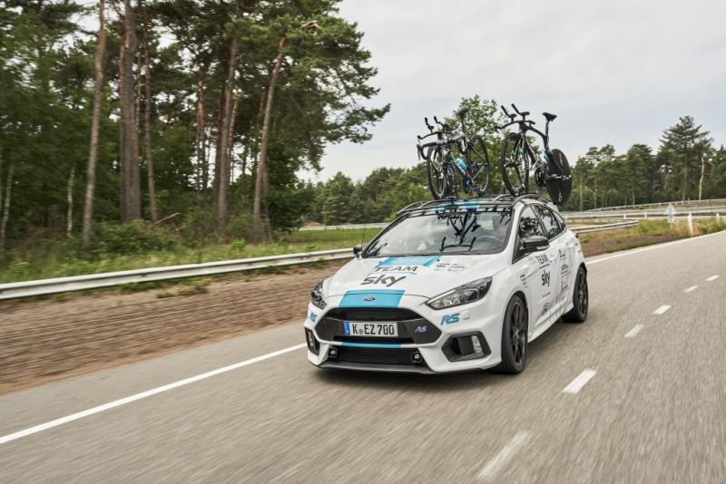 A Team Sky sportigazgatói és menedzserei által használt Mondeo kombikhoz hasonlóan a Focus RS-t is módosították, hogy megfeleljen a folyton változó versenyhelyzeteknek, útfelületeknek és időjárási viszonyoknak. Az autó hasznos terhelhetőségét 350 kilogrammal növelték, hogy gond nélkül elbírja a csapattagokat, a tartalék kerékpárokat és kerekeket, az italos palackokat, a szerszámokat, sőt még egy nagyméretű hűtőládát is. A versenyzők segítői és a VIP-vendégek összkerékhajtású Ford S-MAX és Edge modellekben utaznak.