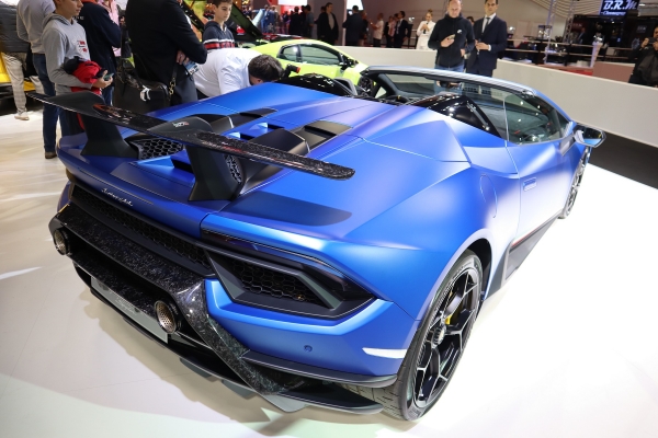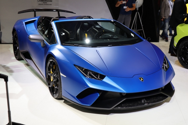 Lapozzunk. Ez nem műanyag, inkább karbon. Genfben nagy hacacáré övezte a kék Lamborghini Huracán csúcsmodelljéből készített kabriót, a Performante Spydert. Párizsban a legtermészetesebb volt, hogy a sokadalom ellenére kényelmesen kigyönyörködhette benne magát az ember. Végül is csak 310 ezer euró az alapár, ezért 3,1 másodperces 0-100 km/h sprintet kapunk 325 km/órás végsebesség társaságában. Nem rossz belépő a 640 lóerős, 10 hengeres, 90 fokos hengerszögű motortól. Társa az olcsóbb Coupe rikító zöldben díszelgett.