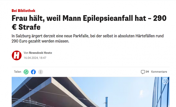 Például egy nő rövid időre megállt a könyvtár melletti parkolóban, mert fogyatékos gyermeke rosszul lett. Most ezért 290 eurót kellene fizetnie. Salzburg város lakossági szolgálata megkereste az ügyvédi irodát, amelynek válasza a következő volt: A tiszta jogi helyzetre tekintettel további levelezést feleslegesnek tartanak.