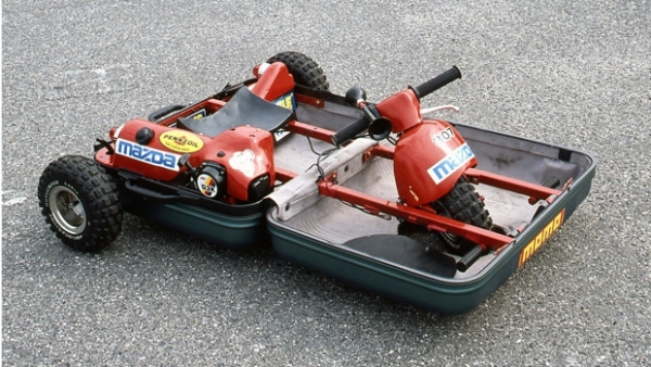 Ez volt a "bőrönd-autó", amelyet a Mazda mérnökei terveztek a japán márka által meghirdetett Fantasyard ötletversenyre. A kezdeményezés célja a legkreatívabb és leginnovatívabb kerekes találmányok bemutatása volt.