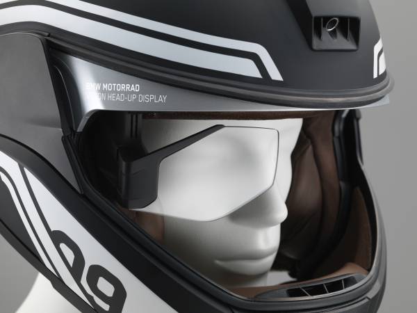 Annak érdekében, hogy e technika a jövőben a motorkerékpárokon is rendelkezésre állhasson, előzetes fejlesztés keretében egy BMW Motorrad bukósisakot láttak el a tervezők az innovatív Head-Up Display funkciójával. Ezzel immár a motorosok számára is lehetővé vált, hogy a legfontosabb információk közvetlenül látóterükben tűnjenek fel. Így feleslegessé válnak a műszeregységre vetett sűrű pillantások, a motoros pedig tekintetének és figyelmének elvonása nélkül immár zavartalanul az útra és a forgalomra összpontosíthat. Az éppen kijelzett adatállomány szabadon programozható, így ideális esetben csakis olyan információk jelennek meg a motoros szeme előtt, amelyek az adott menethelyzetben valóban relevánsak és hasznosak, a lehető leghatékonyabban támogatva a biztonságos közlekedést.