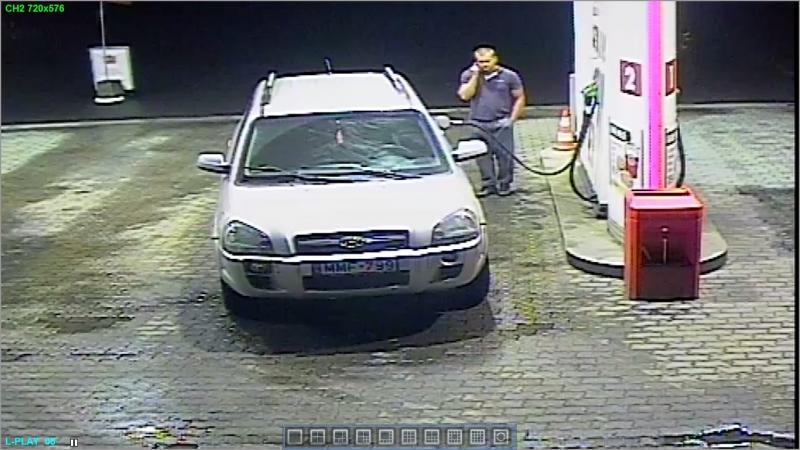Az üzemanyagtöltő állomás biztonsági kamerája a járműről és annak vezetőjéről felvételt készített.