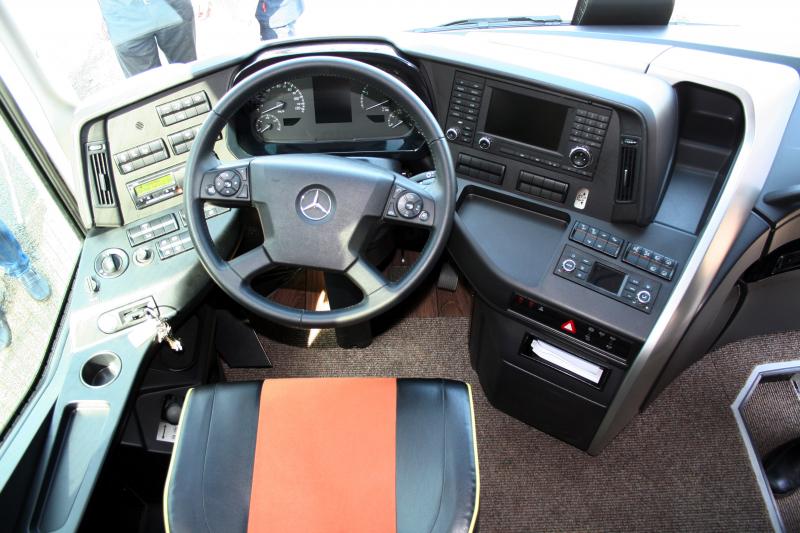 A kipróbált Tourismot, amely háromtengelyes kivitelű, kormányzott C tengellyel egy 420 lóerős motor repíti rendkívül dinamikusan, a sebességváltásról a Mercedes nagyjárműveiben jól bevált 8 fokozatú teljesen automatizált Power Shift váltó gondoskodik. Ebben a járműben is megtalálhatóak mindazok a vezetéstámogató biztonsági berendezések, amelyeket kötelező jelleggel elvár a piac és az előírások is megkövetelik. A takarékos üzemeltetést a Mercedes PPC hajtásláncvezésrlése biztosítja, amely terepkövető tempomatként a legoptimálisabb üzemanyag-felhasználással repíti a járművet. A motorérben automata tűzoltó berendezés szolgálja a biztonságot. Az új Tourismo felépítménye természetesen megfelel a tavaly bevezetett, új borulás-biztonsági szabályoknak.