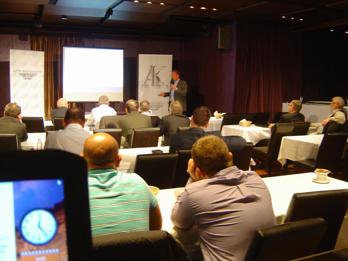 Zsombori Levente, a Generali Providencia Biztosító Zrt. kárigazgatója gépjármű biztosításokról, és a kárrendezésről, különös tekintettel az aktív kárrendezésről beszélt, Fejes László, az MKB-Euroleasing igazgatója Gépjármű finanszírozás a válság alatt, deviza alapú finanszírozások szerepe, helyzete címmel tartott előadást.
