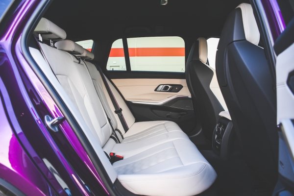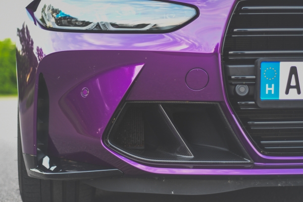 Egy hét után sem tértem napirendre felette, hogy mennyire dögös a hosszú fara azokkal a hirtelen tört szélesítésekkel a hátsó kerékjáratok előtt, amiket szívdöglesztően kitöltenek a 20-colos felnik. Előre egyel kisebb, 19-colos felniket szerelnek, ami optikailag magasabbnak, butábbnak mutatja az orrát, de sokat kompenzál az öblös, szénszálas légbeömlőkkel az első lökhárítón, amik mögött két hatalmas hűtő gondoskodik a fékek megfelelő hőmérsékletéről. Látszólag semmi sincs elspórolva, de hát pont ezekért az extra mérnöki órákért fizeti ki valaki a valódi M-es változat 9 milliós felárát mondjuk egy M340i-hez képest.