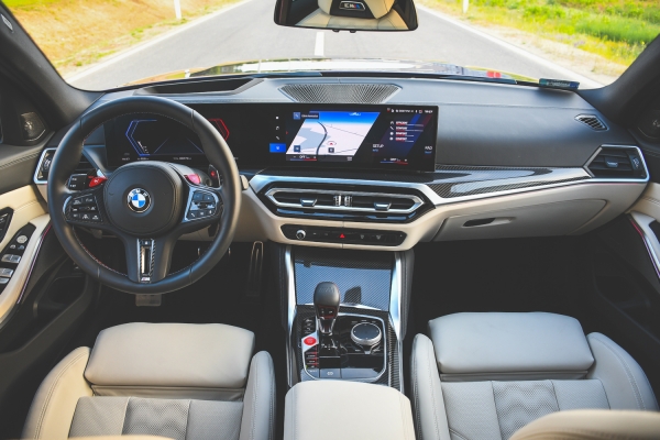 Tényleg minden lényegi komponense szénné konfigurálható. Három szinten állítható a váltó, illetve tovább sportosítható a motor, a kormányzás, a fék, a futómű, és ami a legjobb: ha akarod összkerekes, ha akarod, csak hátra hajt. Ez az az összetettség, kompromisszummentes felhasználhatóság, amit egyetlen versenytárs, vagy korábbi M3 sem tudott. Igazából egy mérnöki csoda, hogy úgy tudunk 510 lóerő felett uralkodni, mintha a világ legegyszerűbb dolga lenne.