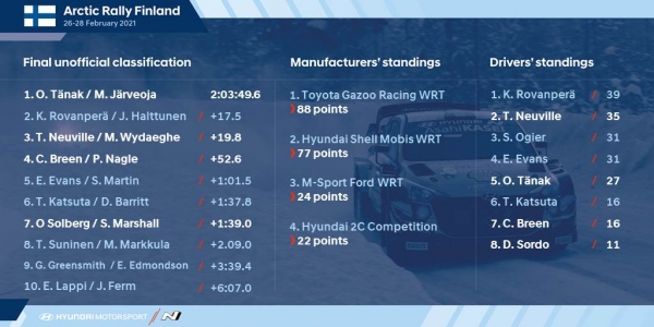 Először, de vélhetően nem utoljára rendeztek Lappföldön, Finnországban rali-vb futamot, az Artic-rali a Svéd-rali helyére ugrott be, ott ugyanis kevés volt a hó és a Covid-járvány miatt amúgy sem engedték volna megrendezni a versenyt. Az Északi-sarkkörön ideális körülmények, vagyis napsütés, hideg, és sok hó várta a mezőnyt, a gyorsaságig rendkívül gyorsak voltak, sokszor hatodik fokozatban, tiltáson száguldottak a versenyautók.