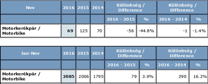 A hazai motorpiac egy másik, hovatovább örökzöld rákfenéje, hogy az 50 köbcentiméter alatti kismotorok és robogók regisztráció (rendszám) nélkül kerülnek forgalomba, így ebből adódóan – több gond mellett – nincs pontos statisztikai számbavétel az újakról sem. Ihász János, a Yamaha Magyarország értékesítési vezetője szerint e kétkerekűek értékesítése évente 2500 darab körül mozog, vagyis ha becslése igaz, akkor a 2016-ban eladott új motorkerékpárok száma mindösszesen 5 ezer lehet.