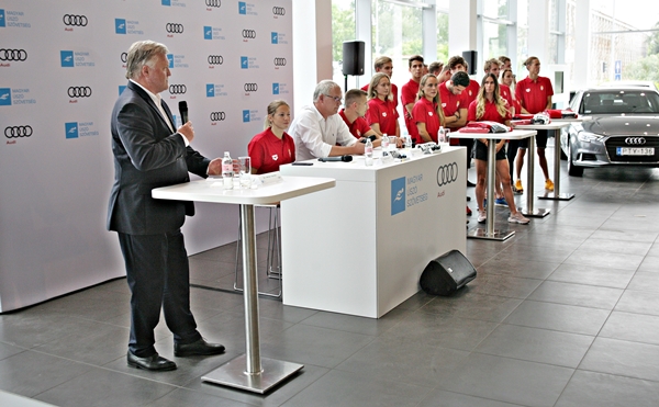 Dr. Vérten Sándor, a Porsche Hungária kommunikációs igazgatója örömét fejezte ki, hogy ennyi nagyszerű sportoló volt egy időben a Mozaik utcai Audi szalonban, hiszen a márka hazai létezése óta erre nem volt még példa. Az igazgató hozzátette, remélik, hogy az autóikkal érdemben is hozzájárulhatnak majd a versenyzők olimpiai sikereihez. A válogatott nevében Kapás Boglárka köszönte meg elsőként a nagyvonalú felajánlást, mint mondta, alig várja már, hogy kipróbálhassa az új Audit. A fiúk részéről pedig a korelnök és vb-bronzérmes váltó, Kozma Dominik beszélt arról, hogy ezzel az autóval garantáltan jókedvűen fog megérkezni a kora reggeli edzésekre, és még a fárasztóbb nap végén is mosolyogva tud majd hazatérni.