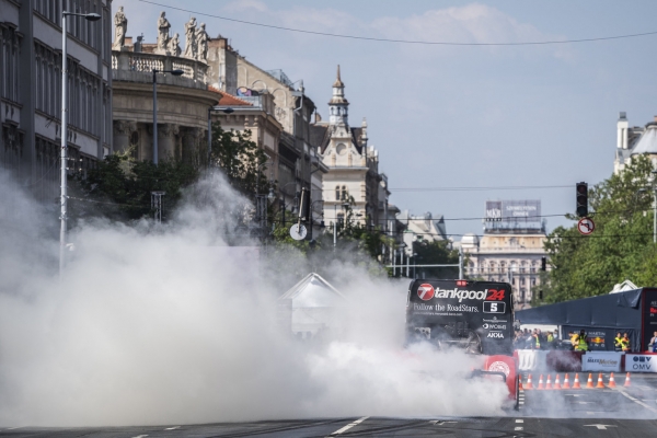 “A show része volt a fánkozás, azért megyünk ki minden év május elsején, hogy szórakoztassuk az embereket, meg persze kicsit magunkat is. Ritkán van rá lehetőség, hogy az ember a Bajcsy-Zsilinszky út közepén gumit égessen, úgyhogy, ha már ott voltam, rendesen megpörgettem a kamionomat, hadd tudják meg az emberek, hogy milyen a versenyzés illata” - mondta Kiss Norbert a bemutató után.