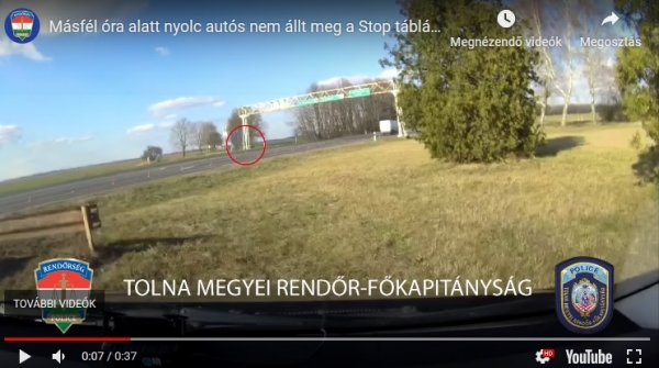 A megyei forgalomellenőrző alosztály egyenruhásai – a közlekedésbiztonsági helyzet javítása érdekében – szerveztek fokozott rendőri ellenőrzést a 6-os és a 63-as főút kereszteződésében, valamint a 6-os főút sötétvölgyi szakaszán az elmúlt hétvégén. A rendőrök a nap folyamán azokat a közlekedőket figyelték, akik a 63-as főúton kihelyezett STOP táblánál nem álltak meg. A 6-os főúton ellenőrizték továbbá azokat a járművezetőket is, akik egyéb jogsértéseket követtek el, többek között záróvonalon előztek vagy nem használták a biztonsági övüket. A rendőrök mindössze másfél óra alatt nyolc olyan autóssal szemben intézkedtek, akik nem álltak meg a STOP táblánál, négyen pedig a biztonsági övüket nem használták.