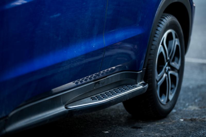 Az új HR-V egyszerűen jól néz ki. Aki látta, kiemelte fiatalosságát, amiben persze sokat segített az élénk kék szín, ami nagyon jól áll neki. Az általunk tesztelt autó legmagasabb, executive felszereltség mellé kapott egy „Aero-csomagot” is, ami sportosabb első és hátsó lökhárítókat és küszöbszélesítést jelent, ára kb. 410.000 Ft.