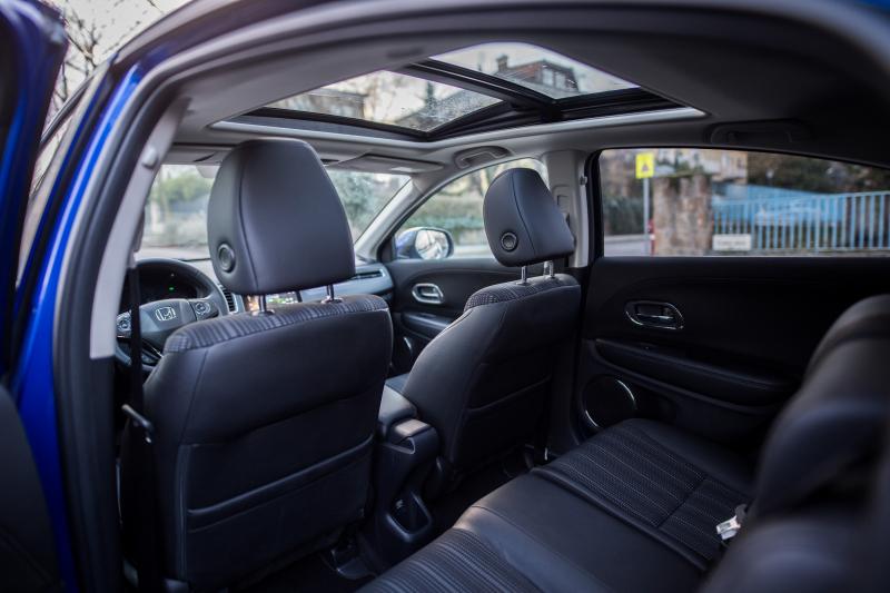 Ki gondolná, hogy ez az autó a Honda Jazz alapjaira épült? Kívülről egészen nagynak tűnik és 190 cm alatt valóban az belülről is, hátul is egészen kényelmesen el lehet férni, a lábtér bőséges, de kialakításának köszönhetően hátul könnyen megfejelhetjük a plafont egy-egy bukkanón áthaladva. Hogy a HR-V pontosan a konkurens gyártók melyik modelljeinek is a riválisa, nem könnyű megmondani, ez a méret egyedi, de pont ennek köszönhető praktikussága.