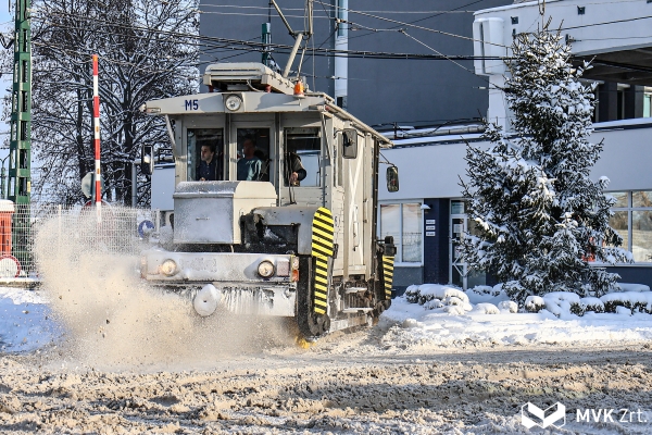 Ma nem mindennapi látványban – és hangban – lehetett része Miskolcon azoknak, akik a villamosvonalak mentén jártak a közelmúlt nagy havazása idején. Kigurult ugyanis a remízből dolgozni a Miskolci Városi Közlekedési Zrt. legidősebb büszkesége, a 116 éves M5-ös hóseprő mozdony.