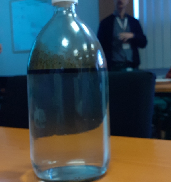 Algyőn már csak 2-3 százalék az úgynevezett termelvény olajtartalma, a többi víz és ezt a sajtótájékozatatón kitűnően szemléltették is. A vizet természetesen szigorúan vissza kell sajtolni. Két üveget mutattak a sajtótájékoztatón, egyikben zavaros valami volt, a másikban a kevéske letisztult olaj úszott a víz felszínén. Algyőről természetesen Százhalombattára megy az olaj a vezetéken.