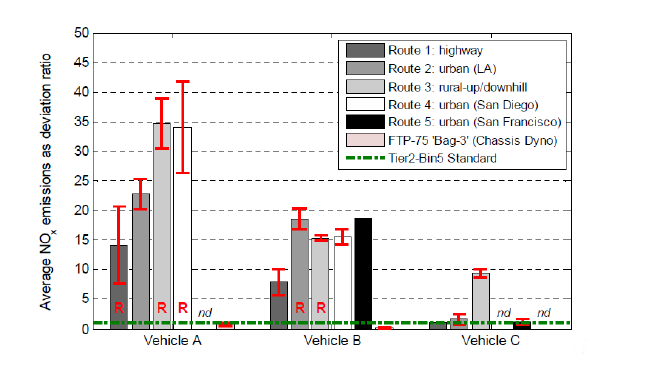 A vizsgálat eredeti célja a ma alkalmazott három eltérő NOx kibocsátás csökkentő katalizátorrendszer összehasonlítása volt. Az eredmény azonban másra is visszavezethető és utóbb „lefülelt” okból kialakult eltérést is deklarált.