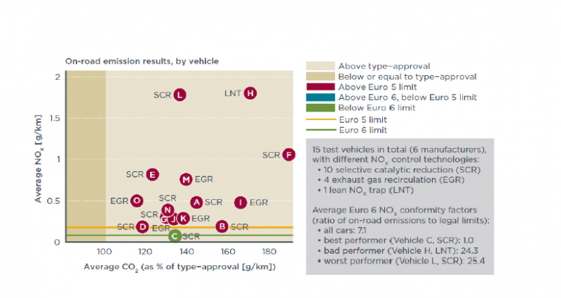 Átfogó vizsgálatot végzett azonban a Nemzetközi Tiszta Közlekedés Tanácsa (IPCC) európai és amerikai mérésekkel. 6 gyártó 15 eltérő Euro 6-os dízel modelljét vizsgáltak meg tavaly, szintén eltérő katalizátor technológiák elemzésével. Egyetlen egy hozta közülük a kötelező szintet és még kettő felelt meg a korábbi elvárásnak, a másik tucat még annak sem!