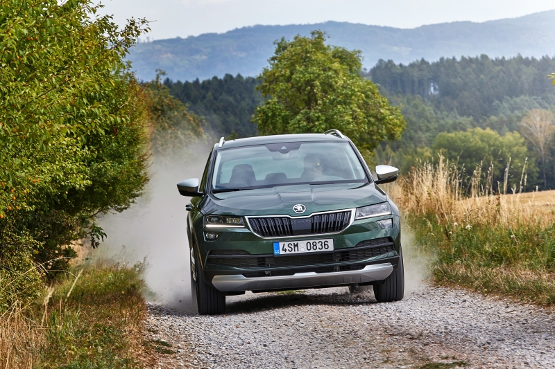 A Skoda Karoq Scout hajtásrendszerei kínálatában egy benzin- és két dízelüzemű motor szerepel, amelyek egyaránt összkerékhajtáshoz csatlakoznak. Robusztus megjelenését elején, hátulján és oldalán markáns ezüstszínű karosszériakiegészítők hangsúlyozzák, valamint a 18 col peremátmérőjű, antracitárnyalatú, polírozott „Braga” könnyűfém keréktárcsák. Az utastérben bőrbevonatú multifunkciós kormánykerék és az extrafelszerelésként rendelhető Virtual Cockpit vonzza mindjárt a tekintetet, a hangulatvilágítással kiegészített, LED-technikájú belsővilágítás-csomaggal pedig az egyéni igények szerint változtatható a belső színvilág és hangulat.