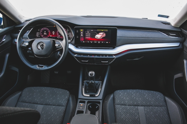 Az új Octavia minden létező szempontból elképesztő ugrás az elődjéhez képest, amit már az első pillanatban érezni a volán mögé huppanva. Egy minőségi, minden részletében karakteres és átgondolt utastér fogad. Szinte átfolyik előttünk a félig szövettel fedett műszerfal, amibe igényesen tudtak integrálni még egy 10-colos kijelzőt is. Mintha a cseh márkának több játékosságot engednének, hogy aztán megszülethessenek olyan, valóban egyedi formai megoldások, mint a szárnyas belső ajtókilincs, vagy az új generációs kétküllős kormány.