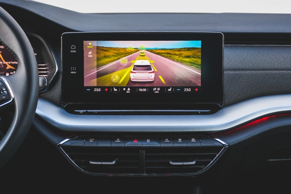 Olyan érzésem volt, mintha a Simply Clever megoldásokat sikerült volna átültetniük a digitális térbe. Legjobb példa erre az Okosklíma menü, ami annyit csinál, hogy megnevesíti, és külön gombra helyezi azokat a funkciókat, amikért eddig manuálisan kellett tekergetni a klímát és a légbeömlőket. Egy gombnyomás a lábak melegítése vagy a kezek melegítése, ő majd intézi az irányítást. De például a hangulatvilágítást is sikerült egy következő szintre emelni, ugyanis külön állítható a lábtér és a műszerfal színe, de vannak előre beprogramozott hangulatok is: Tél, Nyár, Óceán, Race – ami valamiért angolul maradt.