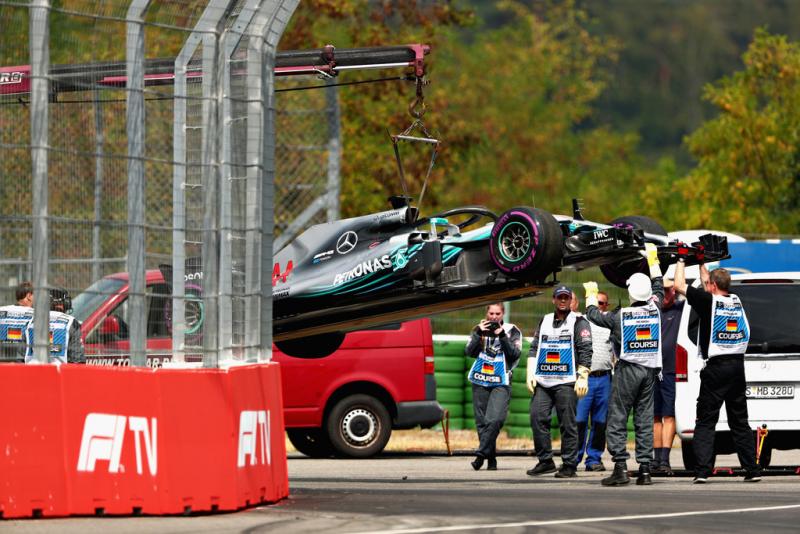 A látszat csalt. Lewis Hamilton a hockenheimi időmérő edzés Q1-es szakaszának végén előbb kicsúszott az első kanyar után, majd az egyik kerékvetőn áthajtva ugratott egyet, és az autója megállt. A jelenet azt sugallta, hogy vezetői hibája után túl agresszív volt, és ezzel tönkretette a saját autóját, melynek hidraulikus szivárgás miatt tönkrement a kormányműve.