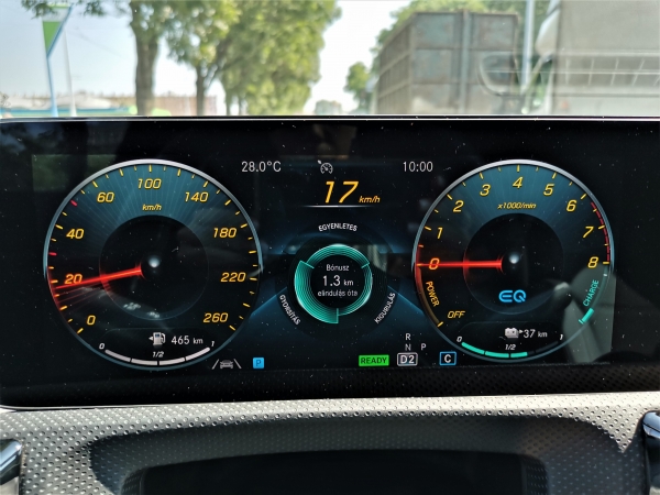 A CLA ugyanis azon túl, hogy igazi megjelenős autó, és főként a fiatalabb korosztályt célozza meg, elég komoly műszaki paraméterekkel is rendelkezik. Ha a zöld rendszám önmagában nem lenne elég feltűnő, illetve a már előzőekben említett e betű a típusjelzés végén, akkor az autó két oldalán lévő tanksapka biztosan elárulja, hogy itt nem egy sima autóról van szó. Hanem egy plug-in hibrid változatról, amelynek elektromotorja 102 lóerős és tisztán kb 40-50 km-t megy vele el az autó, mellé pedig kapott a CLA egy 160 lóerős 1,3 literes benzinmotort is.