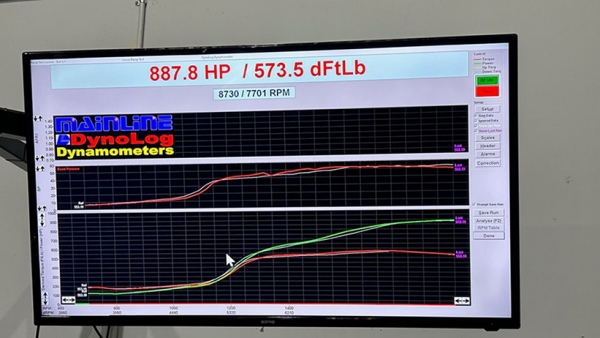 Hogy pontosan mit csináltak az azóta eltelt egy évben, nem tudjuk, de működött: a tavalyi ötszázról mostanra ezer lóerőre nőtt a motor teljesítménye! A méréshez az autóba beszerelve emelték a fékpadra a motort, és a hajtott tengelyen 887,8 lóerőt mértek (méghozzá elképesztő 8730/perc fordulatszámon), ami a konzervatív számítások szerint is kiadja a főtengelyen mért 1000 lóerőt.