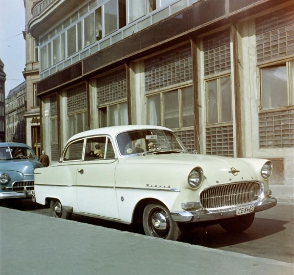 Bauer Sándor fotóriporter 1965-ben a budapesti utcákat járva fényképezte az érdekesebb járműveket, köztük ezt a régebbi Opel Rekordot... (Forrás: Fortepan/126445)