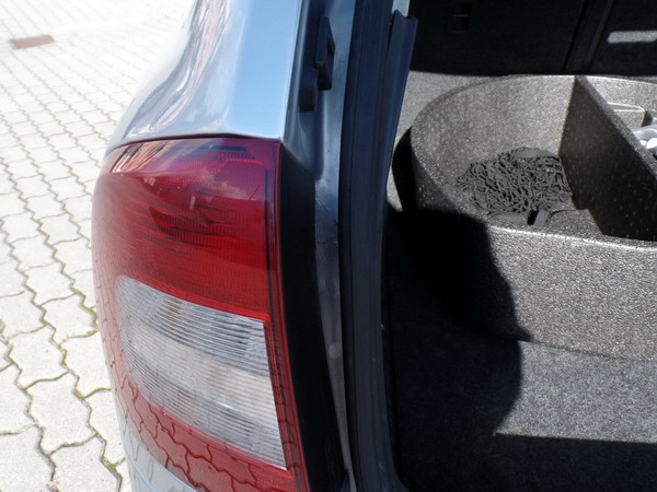 Itt látható a baloldali D-oszlop, vagyis a bal hátsó „ajtófélfa”. A lámpa felső részénél van az előbb említett illesztési pont. Ha közelebbről megnézzük, látható az újjabb turpisság…