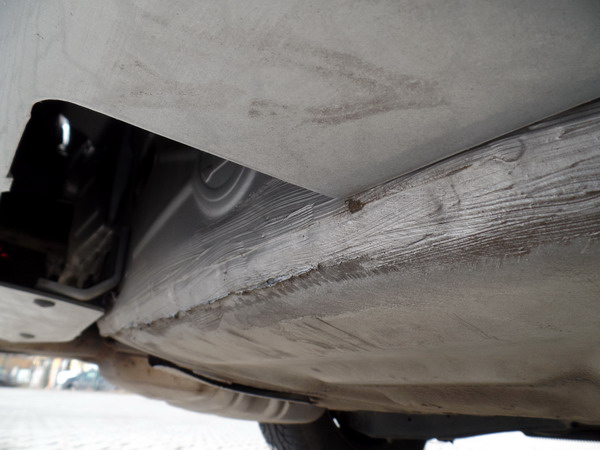 Rendben, hozom a térdelős pokrócomat és alánézek. Itt már az várt, amire számítottam. A fenéklemez és a hátfal illesztésénél látható tömítőanyag nyilvánvalóan nem gyári kivitelű.