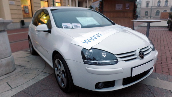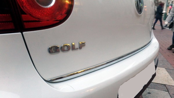 A kiállított kocsi egy Volkswagen Golf V. volt, hófehér színben, nagy alufelnikkel, és némi cicomával a díszléceknél. Tény, hogy a karosszérián – bár erősen sötétedett már – egyáltalán nem láttam sérülést, magyarul a laikus autókereső számára azonnali pozitív hatásként jelentkezik, hogy az autó nagyon szép.
