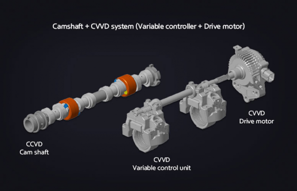 A motor teljesítményének és az üzemanyag-hatékonyságának fejlesztésére kifejlesztett CVVD a szelepek nyitásának és zárásának időtartamát a vezetési körülményeknek megfelelően szabályozza. Az OEM állítása szerint a teljesítmény 4%-os és az üzemanyag-hatékonyság 5%-os javulását, valamint a károsanyag-kibocsátások 12%-os csökkenését is eléri az új rendszer.