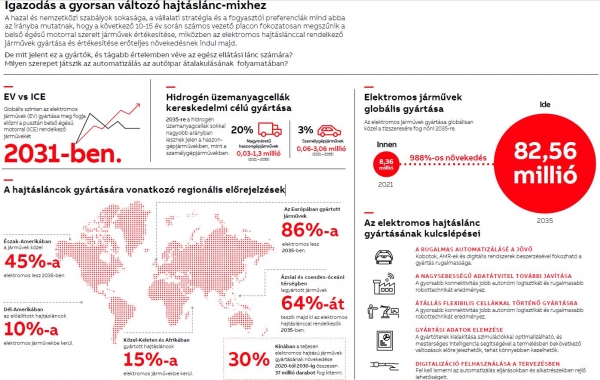 A gyártók az éghajlatváltozás mérséklésére irányuló ambiciózus célokra, valamint a szabályozások és a fogyasztói attitűdök hatalmas regionális eltéréseire olyan platformok és gyártó létesítmények létrehozásával válaszolnak, amelyek a hajtásláncok rendkívül összetett egyvelegét képesek befogadni a benzin- és dízelüzeműtől a hibriden át egészen az akkumulátorral működő elektromos hajtásokig, hogy az olyan feltörekvő technológiákról már ne is beszéljünk, mint a hidrogén üzemanyagcellák.