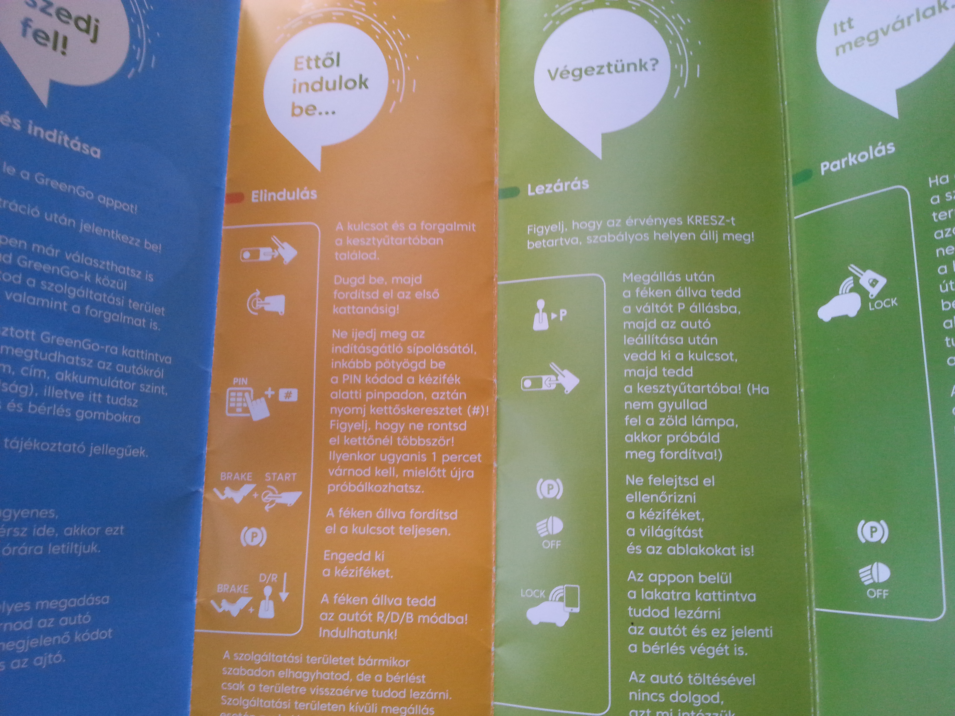 A végére hagytam a szolgáltatás árát és a fizetést. Roppant egyszerű a képlet, percenként 56 forint a díj, parkolás közben 15. A szolgáltató a pénzt a használat után automatikusan levonja a megadott bankszámláról. Aki napi félórát autózik, annak havonta nagyságrendileg 50 ezer forintjába kerül a Greengo. Egy saját gépkocsi fenntartása – törlesztőrészletek nélkül – és használata talán valamivel kevesebből kijön, de annak az árát egyszer ki kellett fizetni. Cserébe viszont az elektromos autóval nem lehet nyaralni vinni a családot, sőt még az agglomerációba tett kiruccanások is megfontolandók mind a költségek, mind a jármű hatótávja miatt.