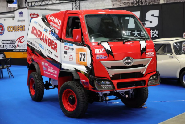 Fogták egy Daihatsu Hijet kabinját, amire megalkották a Hino Ranger kamion orrát, a nagy hűtőráccsal és a ledes fényszórókkal. A fedett plató részt, ami a versenyautókban szinte teljesen üres, fém lemezekből faragták, többek között erre került fel a versenykamion hagyományos fehér-piros fényezése. Van még itt sport kormány, kagylóülések, és egyéb műszerek, hogy teljesen legyen a sportos hangulat, és igazából tényleg képes lehetne végig csinálni a Dakar Rallyt, hiszen remek technikai alapokat szolgál hozzá a Suzuki Jimny létra alváza, amit terepes futóművel, lengéscsillapítókkal és all-terrain abroncsokkal egészítettek ki. A csavar a teljesítménye, ami a kei car szabályok szerint 657 köbcenti, 55 lóerő, tehát meg sem közelíti az eredeti Hino versenykamion 10-literes dízel motorjának tudását. Ugyanakkor sikerült utcára lepapírozniuk, így hétköznapi szaladgálósnak sem utolsó.