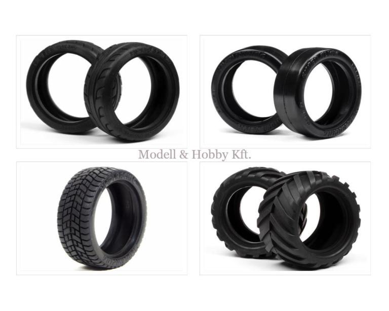 Ezzel a hajtásláncban a motortól eljutottunk a kerekekig. A kerekek pedig mint az igazi modelleknél, alapjaiban meghatározzák modellünk képességeit. A gumik mintázata, mérete, a bennük lévő tömés milyensége is hatással van modellünkre. Sőt! Egy versenyre felkészített modell, jó futóműbeállítások esetén is vesztes lesz adott pályán, amennyiben nem megfelelő a gumiválasztás. Ugyanúgy, mint az igazi autósportban.