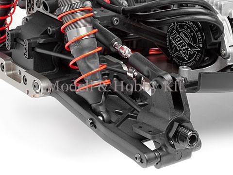 Az is előfordulhat, hogy a szépség kedvéért minden futómű elemet alumíniumra cserélünk, ezzel viszont a modell súlyát is növeljük, illetve hátrányként említhető még, hogy a rugalmas bár törékenyebb műanyag elemekkel szemben, az alu nem törik, viszont hajlik… Egy elhajlott alu lengőkar kipofozása pedig nem biztos, hogy egyszerűbb, vagy olcsóbb cserélni, mint műanyag társáét. Vannak viszont olyan futómű elemek, mint a kerékagyak, melyek cseréje csak előnyére vállhat modellünknek strapabíróság tekintetében.