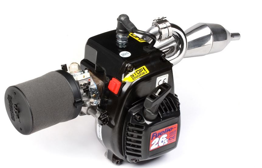 Nagyméretű, 1/5 – 1/6-os méretosztályban, illetve benzines repülőkben találkozhatunk hagyományos, mindenki által jobban ismert benzines motorokkal.