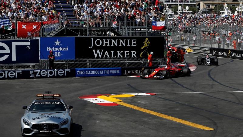 A hatvanadik körben az alagút bejárata előtt Button és Pascal Wehrlein ütköztek, utóbbi autója az oldalára borulva csúszott a falnak. Mindketten feladták a viadalt, jött a biztonsági autó, így többen is érkeztek a bokszba. A safety car bentléte alatt a másik Sauber, Marcus Ericsson is falnak ütközött, így mindössze 12 kör maradt a futamból az újraindítás után. Ekkor azonban már nem változott a sorrend az élen, így Vettel - Räikkönent és Ricciardót megelőzve - győzött.