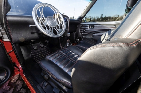 A képeken látható példány, egy 1987-es Toyota Hilux is egészen extrém átalakuláson ment keresztül. Szerény, strapabíró pickupként kezdte életét, mára viszont olyan magasra nőtt, hogy már feljutni rá is kihívás. Az átalakítás során a 20 colos felnikre 49 colos Interstate Super Swamper Irok terepgumik kerültek (amelyek darabja körülbelül 320 ezer forintnak megfelelő dollárba kerül), a teljes felfüggesztést pedig négylengőkaros, légrugós rendszerre cserélték. Az alvázat acélcsövekkel erősítették meg, hogy elbírja a megnövekedett terhelést és a túlélje a mutatványokat.