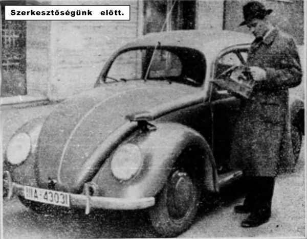 A szerény benzinadagom miatt gyalogjáróvá degradálódva róttam a járdát, amikor a csendes Nádor-utcában ismeretlenül ismerős autót véltem felfedezni. Egészen olyan volt, mint a fényképekről ismert Volkswagen. Mikor elébe kerültem az álló kocsinak, láttam meg a KDF jellegzetes emblémáját.