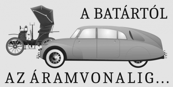Az első, 30 km-es sebességgel tovapöfögő automobilok külső megjelenésükben alig különböztek másban a batártól, minthogy hiányzott előlük a lófogat. Még az utasok is ugyanolyan kenetteljes ábrázattal ültek bennük, mint amilyen pillantásokat eszünkbe véstek a háború előtti évek kocsikorzói a „Stefánián". Az urak keresztbe vetett lábai mellől éppen úgy nem hiányozhatott az ezüst fogantyús ébenfasétabot, mint a szalma-, avagy a szürke keménykalap, mely ismerősök láttára barátságos ívben lendült: le a fejekről. És a hölgyek? Ők mosolyogva bólogattak az álluk alatt kacéran megkötött fátyol védelmébe ajánlott kalappiramisaik alól. Az automobil motorját kizárólag a lovak helyettesítésére szánták és ennek megfelelően az egész jármű a lófogat nélküli sétakocsizó batár szerepét töltötte be. Ó a szép békeévek...