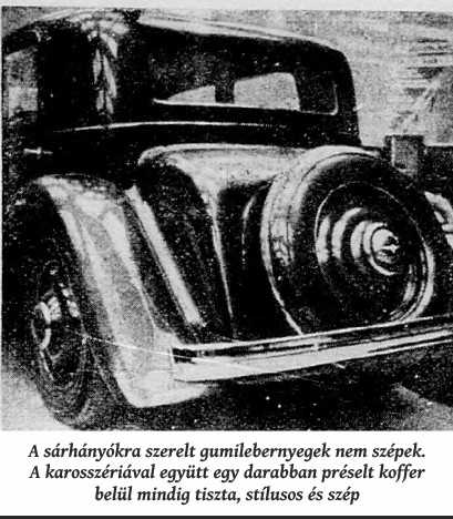 Kétségtelen. hogy a mai modern, földön csúszó, alacsony-építésű autónál a felhágódeszka nem egyéb a hagyománynál, a karosszéria olyan alacsony, hogy a beszálláshoz nincsen szükség hágcsóra. Ma már az autóra nem fel kell szállni, nem is be, hanem a szó szoros értelmében le kell szállni, az ilyesmihez pedig nem kell lépcső. A hágcsó emellett nemcsak megbontja az egységes vonalvezetést, hanem egyúttal megdrágítja is a karosszériát. A gyakorlatban azonban kiderült, hogy korai volt az öröm, a két sárhányót összekötő deszka nem felesleges. Sáros, lucskos időben hatalmas foltok, ablaküvegig érő sárfröccsök éktelenítik el a felhágódeszka nélküli legszebb karosszériát, a száraz országúton pedig a kavicsok, jobb sorsra érdemes úgynevezett fiziológiai hulladékok röppentek fel szöcskék módjára a kilátás szépségében és a sebesség élvezetében elmerült utasok szemei előtt. Mint ideiglenes segítséget az első sárhányókra rögzítőt gumilebernyegeket alkalmazták, ez a megoldás hasznos, de nem szép. Vége egyszeriben a szép, töretlen vonalnak. Egyes ravaszabb konstruktőrök oldalt teljesen zárt sárhányókat szereltek fel. Ez a megoldás távol tartja a sarat és piszkot, amellett nem is csúnya. Csakhogy a sár nem hagy magán kifogni, szépen betelepszik a szép, szabályos sárkagylókba, ahonnan azután ember legyen a talpán, aki vizes tömlővel, vagy lóvakaróval kicsalja a rejtekhelyéből.