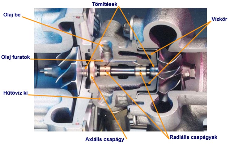 Először a tengely radiális és axiális játékát kell ellenőrizni, mivel a csapágyazás kopása a meghibásodás leggyakoribb oka, így a középrész a legtöbb esetben cserére szorul. A turbó forgórész tengelyét a kompresszor oldalról kell megfogni és megmozgatni. Ha a mozgatás során a kompresszorkerék eléri a házat, koppan vagy súrlódik, akkor a turbó cserére szorul. Mivel a forgórész a házat is koptatta, ezért a házat sem lehet újra felhasználni. Ha a tengely mozgatása során 0,1-0,2 mm-nél kisebb tengelyirányú és 0,2-0,3 mm-nél kisebb radiális játékot mérünk, akkor a csapágyazás kopott, a középrészt cserélni kell.