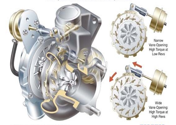A változtatható belépő keresztmetszetű és belépési irányú, a szlengben változtatható geometriás turbónak nevezett feltöltőket eddig a dízlemotorokban alkalmazták, mert a benzinmotorok nagyobb kipufogógáz-hőmérsékletéhez nem volt megfelelő anyagú állítómű, de a VW az 1.5 TSI motorjánál már VNT-turbófeltöltőt alkalmaz.
